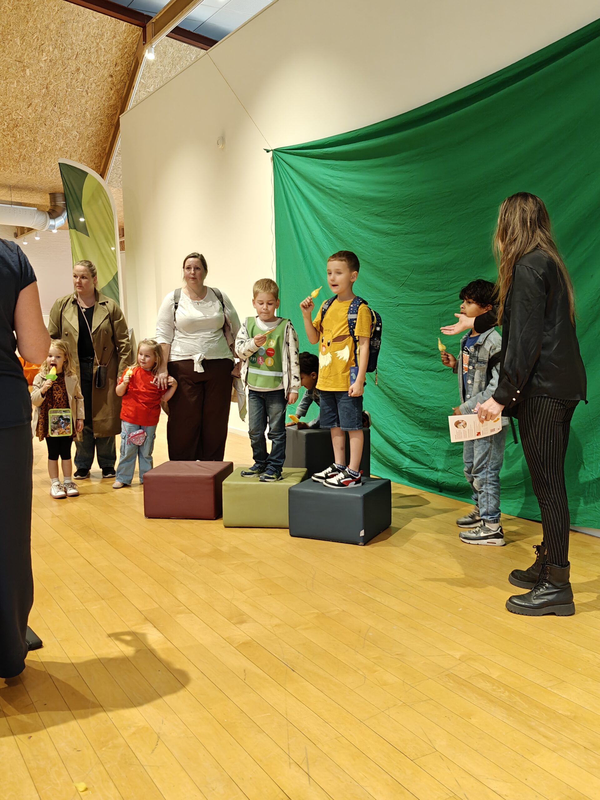 Loop samen met je wandelvrienden door de bieb en ga bij het groene scherm op de foto.